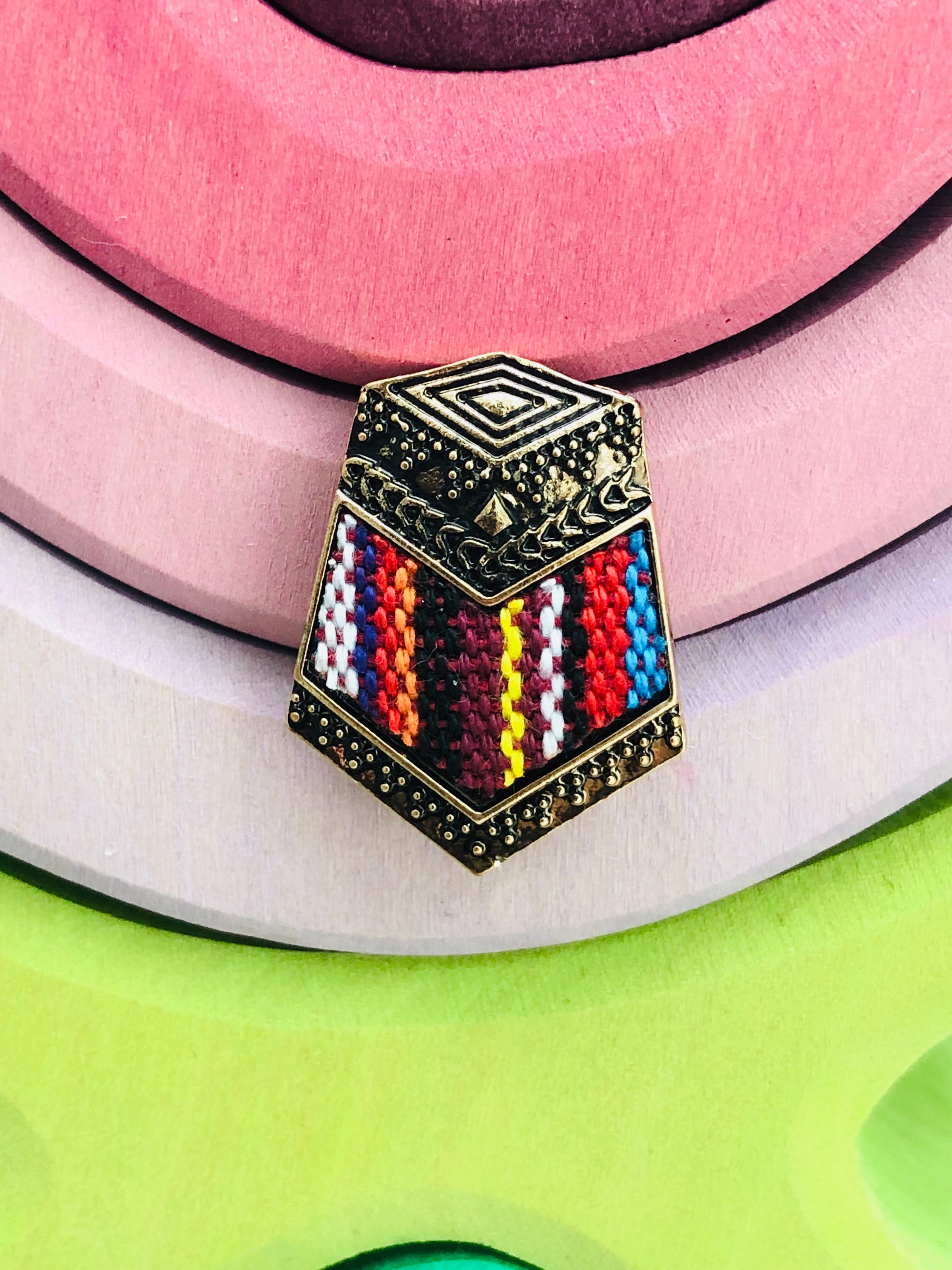 These earthy earrings are embroidered with bold colors! Each earring pair is unique so thread color changes from earring to earring and may be different than depicted in the picture.